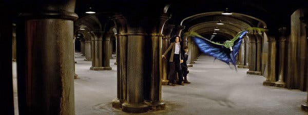 A horn crescendo segues into an excited, tense rhythmic ostinato as we change focus to Queenie trying to save Jacob from his Obliviation. A new repeated melodic idea enters, emphasising the semitone and thus devious nature of Queenie’s Legilimency to achieve her goals. Horn stabs follow this as we transition back to the death cell. Quiet screeching strings overlay brass flares as Newt’s memories are about to be extracted, as Pickett undoes his handcuffs, at which point it all comes to a halt and we get a rousing rhythmic idea from the whole orchestra, as the start of this action scene really begins. It rises before dissipating into a nostalgic harp, woodwind and choral descending idea as we see Tina’s memory of her defending Credence. The strings dovetail back into the more adventurous rhythmic idea, before ceasing completely. A troublesome sounding woodwind passage begins as Tina wakes up and realises her situation, with a chromatic pedal in the strings. Fragmentary stabs underscore this scene as Newt plans her escape, with more coherence gradually gained before the strings start a lyrical idea which rises and rises in dynamic and pitch, before a big hit on a major chord as Tina makes her leap across the Swooping Evil and to safety.