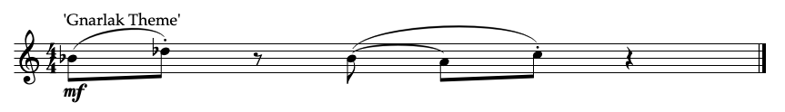 The theme fragments, with just the backbeat on the kit and a loose rhythm over the top of it before stopping, now with a light, disjunct, pizzicato bass figure, followed by a harp and woodwind flourish, as Gnarlak sees Pickett. A now unaccompanied version of the theme returns just in the strings before launching into a tense, oscillating idea in the harp and strings with wind flourishes. A melancholic idea enters on the bassoon with string accompaniment as Newt gives up Pickett. ‘Gnarlak Theme’ is heard once more with more muted brass accents, before coming to a halt. A chromatic, stoic brass figure is heard next as Newt asks about Graves, before a tense crescendo in the strings which warns the arrival of MACUSA and it gives way to a thudding low brass and percussion idea as The Blind Pig is ransacked. A rising major idea in the strings and brass leads into the ‘Heroic Theme’ as our protagonists make their escape, with a rousing crescendo and final hit as they Disapparate.
